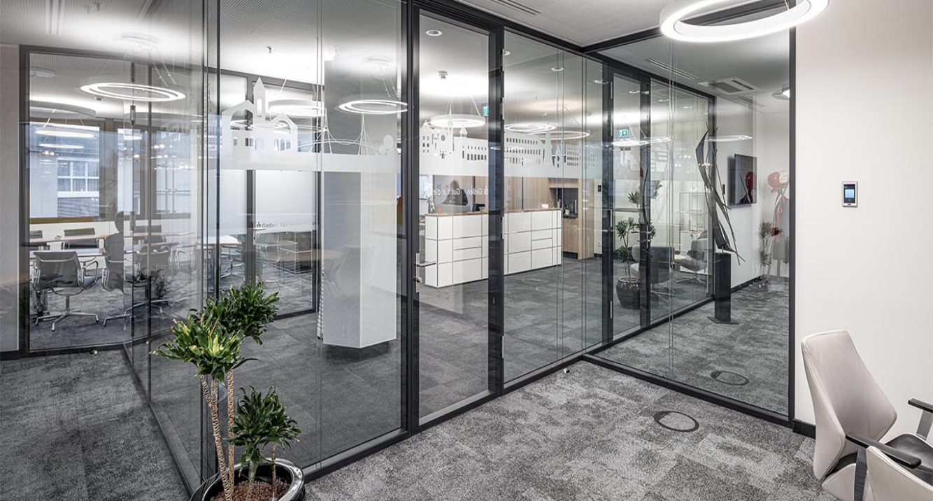 Im Jahr 2024 haben wir in Zusammenarbeit mit der futureoffice GmbH ein zukunftsweisendes Pilotprojekt für die Grenke AG in Baden-Baden umgesetzt. Im Mittelpunkt stand die Integration der Lehnertwand Vista DUO mit raumhoch-montierten Ganzglastüren, wodurch moderne Transparenz und maximale Diskretion miteinander verbunden wurden.