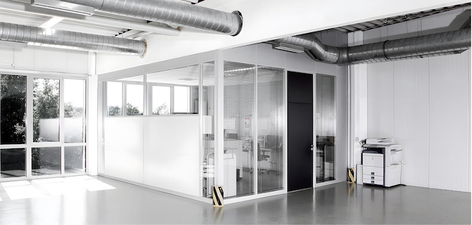 Kabinensysteme bieten Raum für Büroarbeitsplätze innerhalb der Produktion, Meisterbüros oder Pausenräume, ohne wertvollen Hallenplatz zu verlieren. Die modulare Bauweise sorgt dafür, dass Kabinen und Hallentrennwände jederzeit erweitert oder neu angeordnet werden können.
