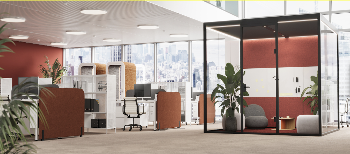 Ergänzend dazu bietet KONOA by Lehnert innovative Akustiklösungen, die weit über klassische Trennwände hinausgehen: Hochwertige Wandabsorber, Deckensegel und raumhohe Glasakustik-Elemente reduzieren den Schall gezielt und gestalten moderne Arbeitswelten, in denen sich Ihre Mitarbeiter wohlfühlen, konzentriert arbeiten und ihre Kreativität entfalten können.
