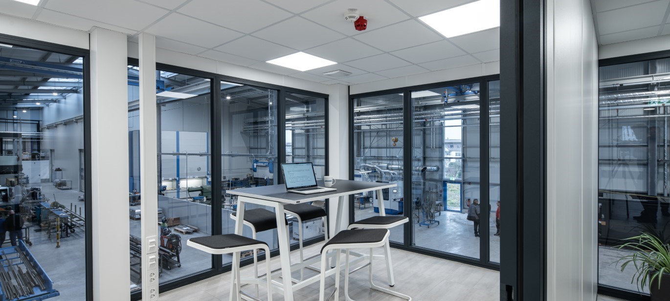 Produktions- und Lagerflächen sind kostbarer denn je und sollten sinnvoll ausgenutzt werden. Dennoch werden produktionsnahe Arbeitsplätze in Zeiten der Digitalisierung immer wichtiger und häufig in unmittelbarer räumlicher Nähe zu den Produktionsflächen zwingend benötigt. Bei diesem Bauvorhaben wurde eine kombinierte Ausführung aus Zwischendecken in Massivbauweise und unseren Raum- und Trennwandsystemen erstellt. Der Kunde erhält hierdurch ein Maximum an Nutzungsqualität.