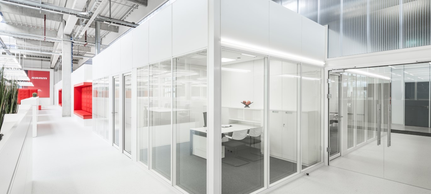 In den bestehenden Produktionshallen wurden Open-Office-Bereiche, Meetingpoints, Recreation-Zonen sowie Labore und Testbereiche in modularen Möbel- und Raumzellensystemen mit unserer Lehnertkabine erstellt. Moderne Arbeitsplätze, Lounges und großzügige Platzverhältnisse motivieren die Mitarbeiter, ihrer Kreativität freien Lauf zu lassen. Die flexible Büroaufteilung ermöglicht das schnelle Zusammenstellen innovativer Projektteams. Optisch abgerundet wird das Raumbild durch die in die Kabinenkonstruktion integrierten Küchen- und Loungeinseln, die in enger Zusammenarbeit mit einem Schreiner erstellt wurden.