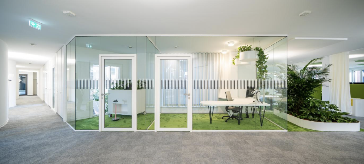 Die modularen Systeme von Lehnert ermöglichen jederzeit Veränderungen, ob beim Umbau einzelner Arbeitsplätze oder ganzer Flächen. Die Schallschutzwerte der Glastrennwände sorgen für Ruhe im Büro. Die verwendeten Materialien sind wiederverwendbar und können recycelt werden. Das Design der Glaswände lässt sich individuell an die Architektur anpassen.